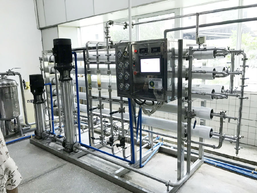 高壓泵系統(tǒng):需通過(guò)高壓泵為原水提供足夠壓力(通常為 1.0-1.6MPa),這個(gè)壓力需超過(guò)原水的滲透壓(取決于原水含鹽量),才能推動(dòng)水分子逆滲透穿過(guò)膜,是設(shè)備運(yùn)行的動(dòng)力來(lái)源。